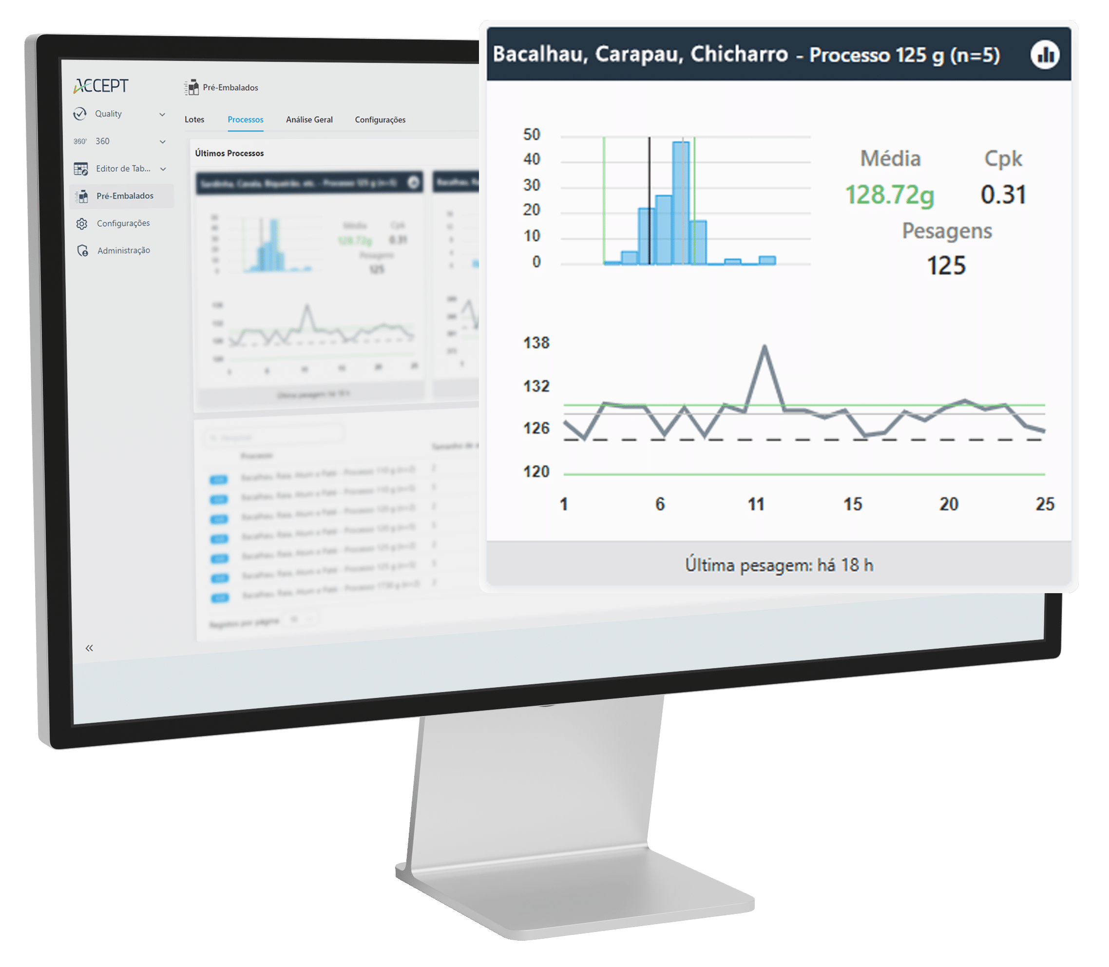 Monitorize o enchimento em tempo real e garanta a conformidade legal dos seus pré-embalados, evitando sobreenchimento e desperdício.