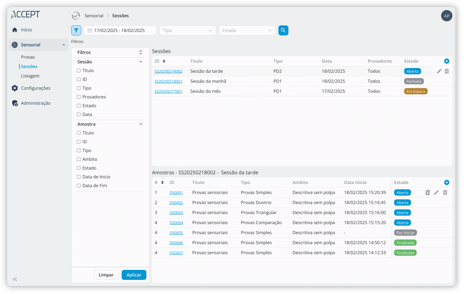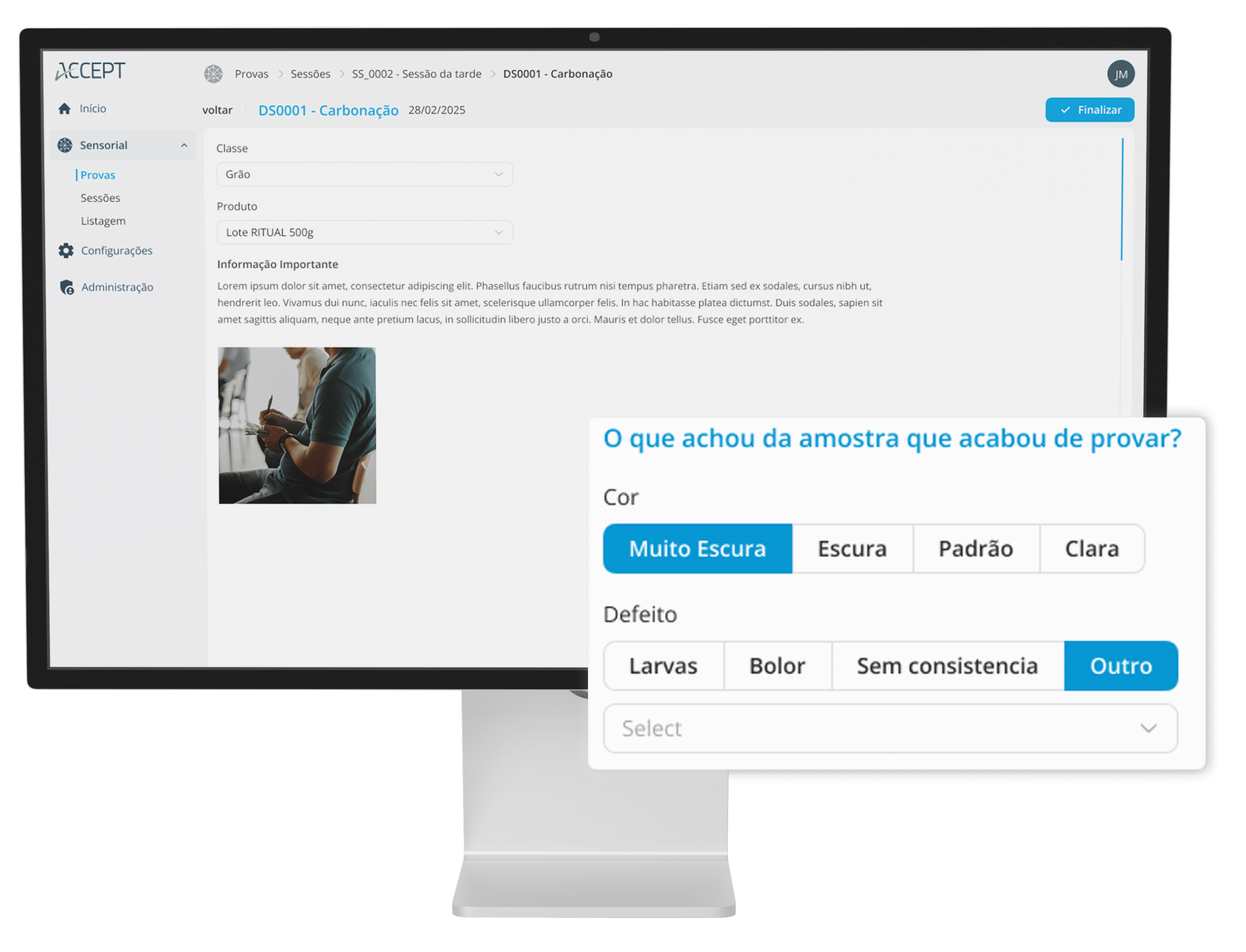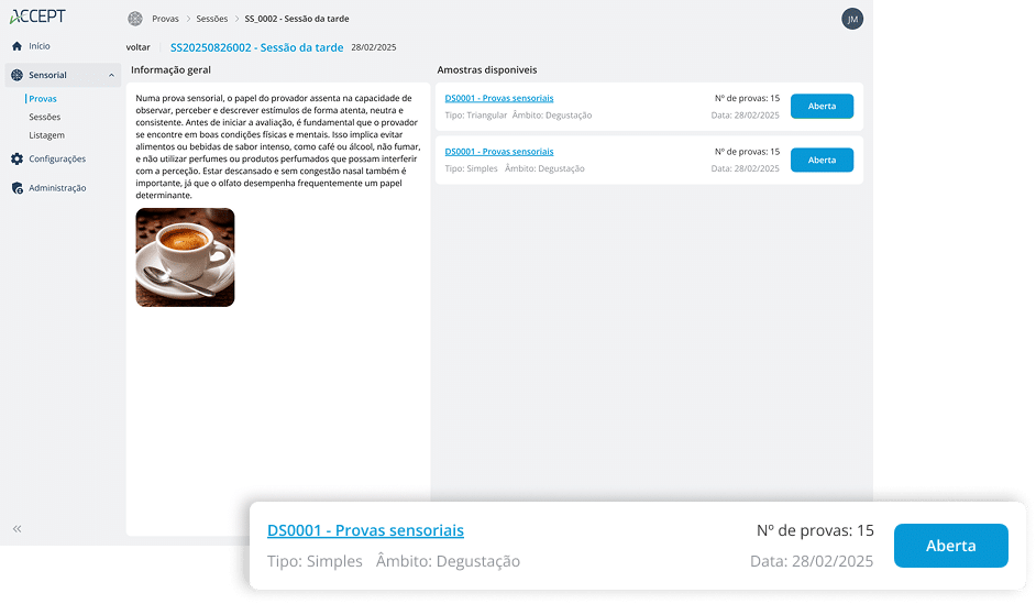 Agende uma demonstração e saiba como o ACCEPT sensorial organiza painéis, resultados e análises num só sistema.