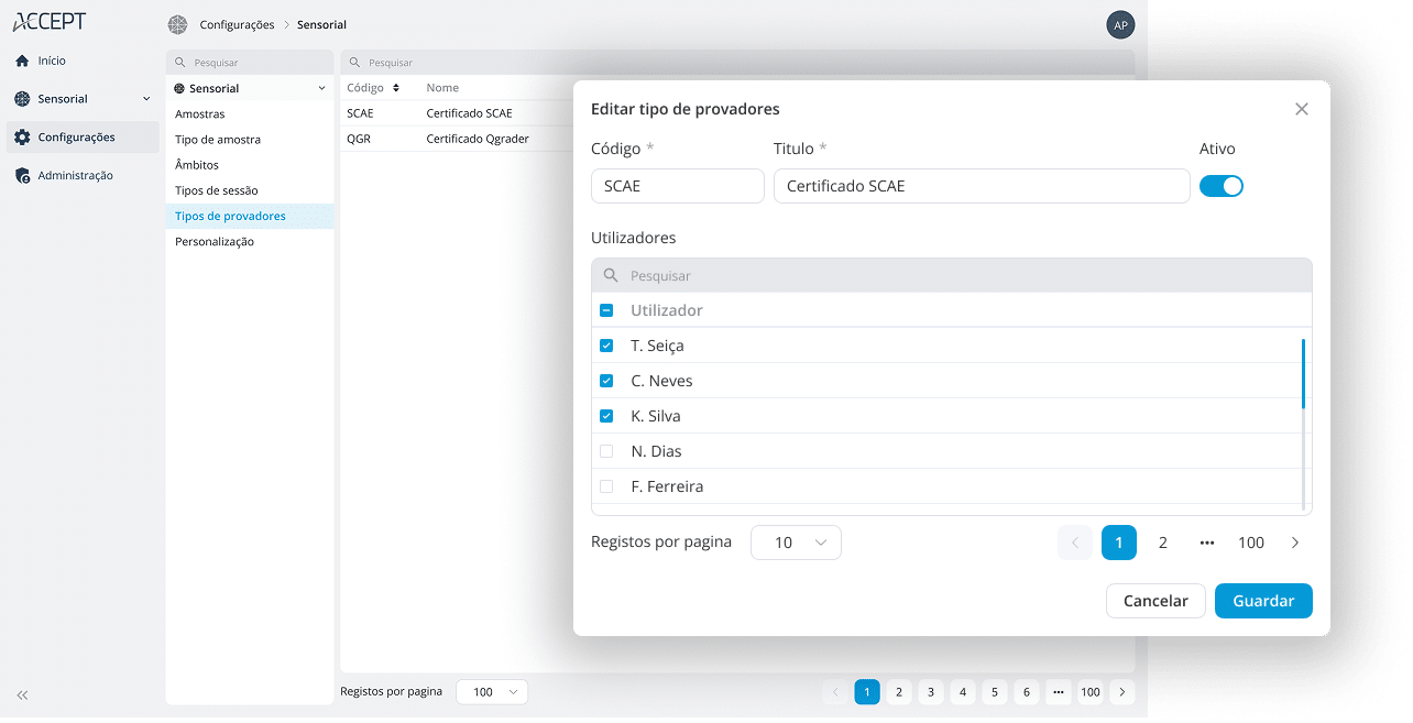 Cada provador acede ao seu painel e regista resultados de forma simples, rápida e normalizada.