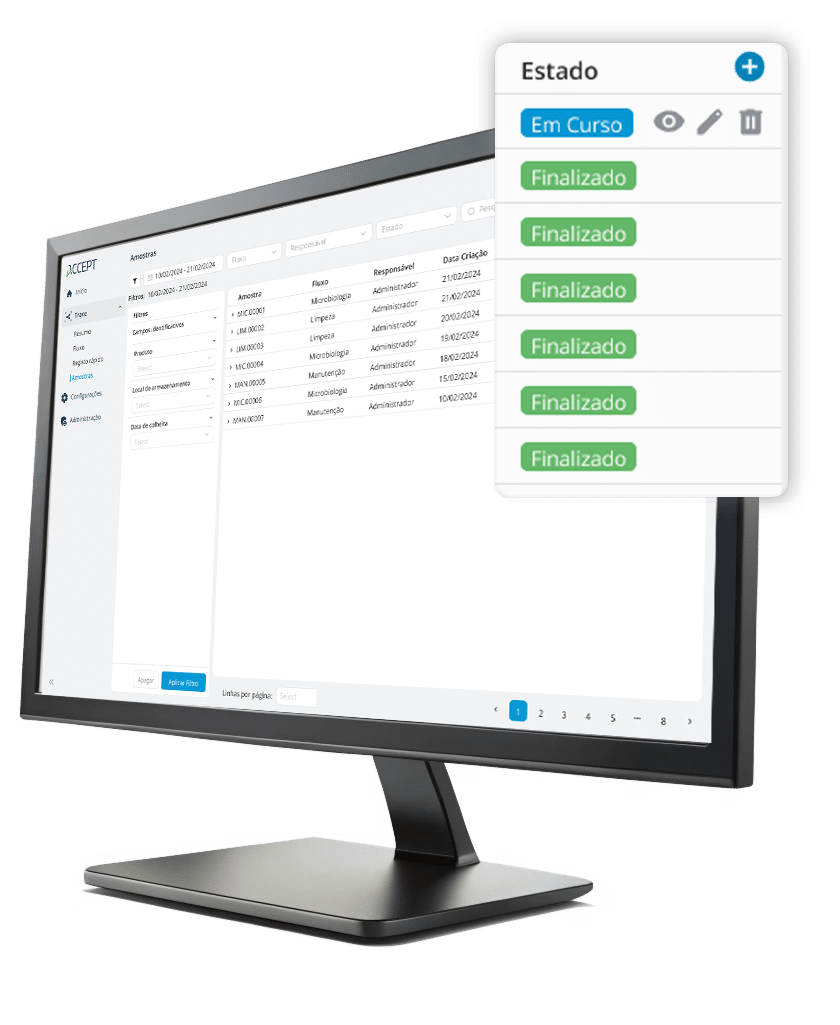Acompanhe cada amostra desde a recolha até à análise laboratorial, garantindo rastreabilidade total, fiabilidade dos resultados e conformidade no controlo da qualidade.