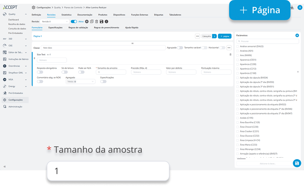 Configure os campos e etapas de cada fluxo de amostragem de acordo com os requisitos da sua operação.